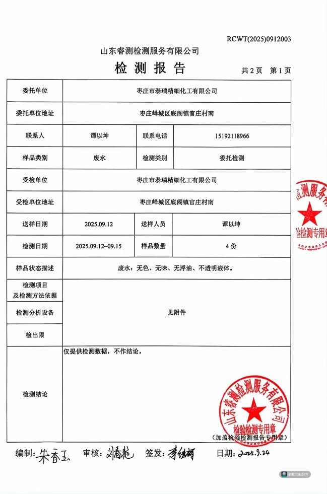 2025年9月廢水檢測報告